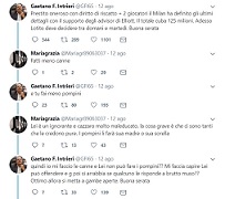 In un altro tweet, inoltre, per replicare ad un utente che lo definiva “lo zimbello del momento”, Intrieri ha risposto: “No è lo zimbello che si scopa quella gran put…. di tua madre”.