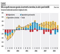 Soprattutto, il dato che emerge è quello della scarsa qualità dell’occupazione: nel confronto annuo nel quarto trimestre crescono solo i dipendenti a termine, la cui incidenza sale dell’1,1% sul 2017.