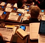 A ridosso dell’inizio della conferenza, vengono fatte entrare una trentina di persone. Il sospetto che ci fossero dei contestatori ha creato scompiglio. La sala non si riempie del tutto, ma fuori viene dato l’ordine di non fare entrare più nessuno.