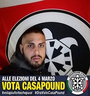 Certo, magari non avrà la tessera ma è uno che si è dato tanto da fare. In un profilo Facebook che ora è stato cancellato ad esempio spiccava tra le altre cose una foto di gruppo con Mauro Antonini, il responsabile Lazio per CasaPound Italia, e una foto profilo scattata davanti alla bandiera del partito con l’invito a votare per CasaPound alle politiche del 4 marzo 2018.