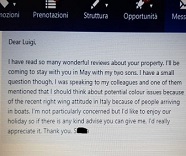 “Ho una piccola domanda – scrive la donna nel messaggio ricevuto dalla guest house ‘Mama mia’ – parlando con i miei colleghi, uno di loro mi ha detto che devo preoccuparmi di possibili problemi legati al colore a causa dei recenti sentimenti razzisti in Italia”.