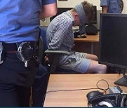 L’immagine di Christian Gabriel Natale Hjort bendato e ammanettato nella caserma dei carabinieri