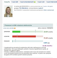 Risulta infatti aver partecipato ad appena il 24.65% delle votazioni elettroniche in Aula mentre per il 75,35% dei casi è risultata assente.