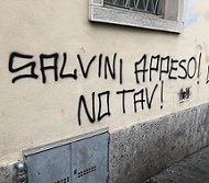 La scritta contro il leader della Lega recitava «Salvini appeso!».