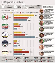 I sondaggi restano quelli degli ultimi giorni, con una forbice di 4/6 punti a favore del centrodestra che marcia, almeno formalmente, compatto e deciso: il Capitano, il Cavaliere e Giorgia Meloni, tutti sorrisi e promesse, giovedì sono andati a Perugia e sabato erano poi a Roma, davanti alla folla di piazza San Giovanni, ad annunciare l’imminente conquista di Palazzo Cesaroni con la candidata Donatella Tesei, senatrice leghista ed ex sindaco di Montefalco, dove ha lasciato un buco nei bilanci da fare spavento.