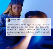 «Da oggi al lavoro per una legge che obblighi chiunque apra un profilo social a farlo con un valido documento d’identità . Poi prendi il nickname che vuoi (perchè è giusto preservare quella scelta) ma il profilo lo apri solo così».