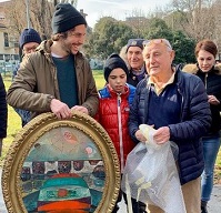 grande movimento”. Parole non di un fan qualunque ma di Giambattista Borgonzoni, papà della candidata Lucia, che si è presentato alla manifestazione delle Sardine con un pacco imballato. Dal quale viene fuori un dipinto, un paesaggio.