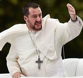 A questo punto è evidente: l’ex ministro dei Citofoni punta al soglio di Pietro. O quantomeno a Medjugorje. Ma nel ruolo di colui che è apparso alla Madonna. Dev’essersi follemente ingelosito, l’altra sera, per la potentissima cerimonia officiata da Papa Francesco nella piazza San Pietro vuota (che simbolo: quell’abbraccio universale di pietra deserto eppure ricolmo e traboccante), e da allora non ha pace, tra selfie col rosario benedetto e, ieri sera, la preghiera in diretta, officiante Barbara D’Urso, la donna più indomita della tv, colei che riesce a spostare il confine del trash sempre un metro più avanti.