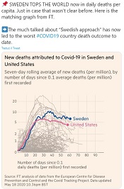 Il totale dei decessi resta in effetti sconcertante: con più di 3.700 decessi in una popolazione attorno ai 10 milioni, la Svezia è all’ottavo posto mondiale per mortalità da Covid-19; sei volte la Norvegia o la Finlandia, in proporzione.