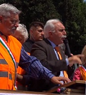Poco prima delle 15 è arrivato Pappalardo, con cravatta arancione, acclamato dai manifestanti e accompagnato dall’Inno d’Italia, in uno scenario di completo squallore.