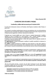E’ quanto precisa l’Istituto superiore di sanità in merito alle comunicazioni di oggi del presidente della Regione Lombardia, Attilio Fontana, in Consiglio regionale