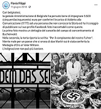 Foto naziste sul profilo Facebook dell’addetta stampa del comune di Belgirate, due per la precisione: nella prima il cancello del campo di concentramento di Buchenwald, e la scritta: “A ciascuno quello che si merita”; nella seconda una maestra che con i suoi bambini festeggia Adolf Hitler: “Per il compleanno del nostro Fuhrer”.