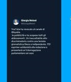 Ecco allora che arriva Giorgia Meloni a spada tratta a difendere ByoBlu da Youtube, il cattivone che «ha revocato al canale le pubblicità e ha sospeso tutti gli abbonamenti» — in seguito, ricordiamo, alla messa in dubbio dell’efficacia del vaccino Pfizer in un momento in cui la campagna per le vaccinazioni è fondamentale. «Un inaccettabile atto discriminatorio contro una testata giornalistica libera e indipendente», scrive Meloni, affermando che Fratelli d’Italia «presenterà un’interrogazione parlamentare sul caso».