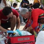 Chiediamo a un medico, giovane volontaria, quanti piedi riesce a curare in un giorno. Si chiama Chiara. “Difficile a dirsi, sicuramente in due o tre ore riesco a curare una trentina di persone. Sono qui per dare una mano, avevo una settimana di ferie e mi sono sentita in dovere di soccorrere queste persone. I medici fanno questo”.