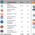 Qui la coalizione di Manildo è prima, con il 48,2% dei voti, mentre quella di Alberto Stefani di ferma al 47,4%.