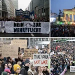 di Berlino si sono riuniti bloccando la Glitschinerstrasse, lungo il canale. Sono qui perché nelle stesse ore al Bundestag sta passando una legge che li riguarda da vicino: la reintroduzione del servizio di leva. E le stesse mobilitazioni accadono in contemporanea in oltre 90 città della Germania.
