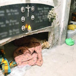 del cimitero, infatti, ci sono alcuni loculi vuoti a livello terra. E qui alcune persone che non hanno una casa hanno allestito dei giacigli di fortuna con coperte, cuscini e addirittura materassi.