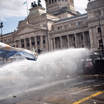 La protesta, voluta da sindacati e organizzazioni sociali, ha portato in piazza migliaia di persone. Una parte del corteo ha cercato di forzare il cordone di sicurezza che bloccava l’accesso al Congresso: sono volate pietre, bengala e bottiglie incendiarie. La polizia ha risposto con idranti e gas lacrimogeni. Un giornalista dell’Agence France-Presse ha riferito di almeno due feriti, un poliziotto