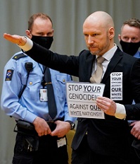 BREIVIK CHIEDE LA SCARCERAZIONE “PERCHE’ SONO CAMBIATO“, POI FA IL SALUTO NAZISTA E CHIEDE LO STOP DEL “GENOCIDIO DEI BIANCHI“