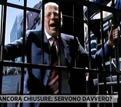 Si presenta all’interno di una gabbia che sta a simboleggiare i divieti per sabato, la domenica di Pasqua e il lunedì di Pasquetta (con l’Italia interamente in zona rossa), gridando (un grande classico) in favore di telecamera.