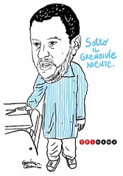 Ma ormai, il suo governo di camerieri ha abituato il Capitano che non c’è argomento in cui non ha diritto di mettere bocca, con poteri e competenze che non gli spetterebbero neppure se fosse, come in effetti è, il Presidente del Consiglio.