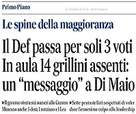 LA NOTA SUL DEF PASSA PER SOLI TRE VOTI… I SEGNALI A DI MAIO CHE ORMAI E’ CONTESTATO APERTAMENTE