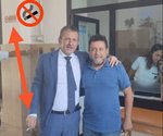 In una, con dietro il cartello “vietato fumare” – com’è ovvio che sia in un qualsiasi spazio pubblico – il sottosegretario ha però una bella sigaretta accesa in mano.