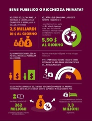 Sono i risultati cui arriva il Rapporto Oxfam del 2018 “Bene pubblico o ricchezza privata?”. Dati e cifre che mettono a nudo l’enorme disparità di ricchezza che divide gli uomini, con in cima alla piramide i grandi Paperoni. Disparità in crescita e sempre più strutturale.