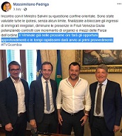 Ad esempio il tre luglio Fedriga si era incontrato con Salvini per la questione del confine orientale e aveva fatto sapere che erano state valutate “tutte le ipotesi, senza alcun limite, finalizzate a bloccare gli ingressi di immigrati irregolari, diminuire le presenze in Friuli Venezia Giulia potenziando controlli con incremento di organici e mezzi delle Forze dell’ordine”.
