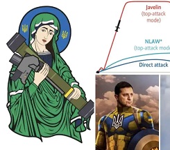 MEME, FOTOMONTAGGI, SANTINI: L’UCRAINA STA VINCENDO LA GUERRA DELLA PROPAGANDA … IL RAZZO ANTICARRO “JAVELIN” STA DIVENTANDO IMMAGINE MITOLOGICA DELLA RESISTENZA UCRAINA