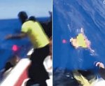 Nel video il momento più atroce del viaggio. Il corpo di una donna viene gettato in mare legato a un salvagente e a un giubbottino rosa
