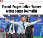 Il quotidiano fondato nel 1952 da Axel Springer, sempre sul web, si concentra sulla rispostaccia data da Spalletti a un giornalista svizzero nella conferenza stampa post partita: visto che il ct italiano aveva parlato di una Svizzera più veloce rispetto all’Italia, il cronista aveva paragonato la nazionale elvetica a una Ferrari e gli azzurri a una Panda. Spalletti ha risposto stizzito, definendo “di cattivo gusto” il confronto. La Bild sull’episodio titola: “Questione Ferrari: l’allenatore dell’Italia si accanisce contro il giornalista”.