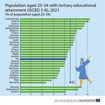 Quasi la metà degli Stati membri inoltre, ha già raggiunto l’obiettivo prefissato al 2030 di aumentare al 45 per cento la quota della popolazione di età compresa tra i 25 e i 34 anni che abbia completato l’istruzione terziaria: Lussemburgo, Irlanda, Cipro, Lituania, Paesi Bassi, Belgio, Francia, Svezia, Danimarca, Spagna, Slovenia, Portogallo e Lettonia.