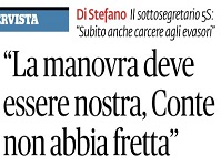 Ma no, il rapporto c’è e funziona. Del resto il premier dal palco di Italia5Stelle sabato ha manifestato la sua riconoscenza al Movimento. Sa che senza di noi non sarebbe a Palazzo Chigi, perchè il Pd aveva posto il veto sul suo nome. Ma ora dobbiamo solo ricomporre un metodo di lavoro.E quando Luca De Carolis ricorda il tentativo del M5S di distinguere tra piccoli e grandi evasori, Di Stefano ribadisce orgogliosamente il concetto: