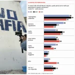 Prevale, infatti, come in passato, la preoccupazione suscitata dalla ‘ndrangheta calabrese, indicata come “la mafia più pericolosa” dal 26% del campione, davanti alla camorra napoletana, segnalata dal 20%. In crescita significativa negli ultimi 2 anni. Mentre la mafia siciliana, Cosa nostra, conferma un indice del 12%. In calo, negli ultimi 2 anni, ma molto simile rispetto a quanto osservato l’anno scorso. La preoccupazione per le mafie che hanno origini nazionali diverse, oltreconfine, appare meno elevata.