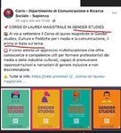 “Il Corso di Laurea Magistrale in ‘Gender studies, culture e politiche per i media e la comunicazione’ ha il suo focus culturale e formativo negli studi di genere applicati all’analisi della comunicazione e dei media e alla produzione di contenuti a carattere informativo, culturale, di intrattenimento, di comunicazione istituzionale, politica e dei brand capaci di integrare una prospettiva gender sensitive volta a promuovere, a livello culturale, un racconto e una rappresentazione delle identità di genere inclusivi e non discriminatori”.