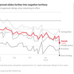 In un grafico riportato su Reuters, frutto di un sondaggio condotto online che ha raccolto le risposte di adulti statunitensi a livello nazionale (il cui margine di errore varia tra il 2% e il 3%) il punteggio attuale del consenso del presidente degli Stati