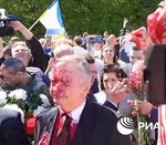 DURANTE LA COMMEMORAZIONE DEL 9 MAGGIO A VARSAVIA LANCIO DI VERNICE ROSSA COME IL SANGUE DEI BAMBINI UCRAINI UCCISI DAL CRIMINALE