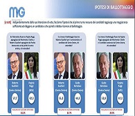 L’ orientamento di voto per il centrodestra è al 34,3% contro il 32,8% del centrosinistra, ma sommando a quest’ultimo il consenso grillino la partita si chiuderebbe.