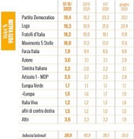 PD 19,4%, LEGA 19,3%, FDI 18,2%, M5S 18%, FORZA ITALIA 7,9%… ALLEANZA PD-M5S-SINISTRA-VERDI A SOLO UN PUNTO E MEZZO DAL CENTRODESTRA