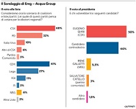 Repubblica Firenze oggi pubblica i risultati di un sondaggio di EMG Acqua sulle elezioni regionali in Toscana dove Eugenio Giani, candidato governatore designato, arriva al 50% rispetto al candidato del centrodestra (non ancora scelto ufficialmente da Salvini, Meloni e Berlusconi) e in cui i voti di Italia Viva, accreditata al 10% nella regione di Renzi, sono decisivi.
