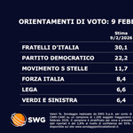 Niente sonni tranquilli per il governo Meloni anche per il referendum sulla giustizia del 22 e 23 marzo. Secondo il sondaggio di Swg, il «sì» è davanti solo per un soffio: 38%, contro il 37% del «no». A votare, però, sarà solo il 46-50% degli aventi diritto. E la percentuale di indecisi resta molto alta: 25%.