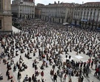 Otto minuti di silenzio. Inizia così, in una piazza Castello gremita di giovani, il presidio a Torino